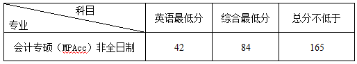 商學院復試專業為會計專碩(MPAcc)非全日制,復試分數線要求如下表: