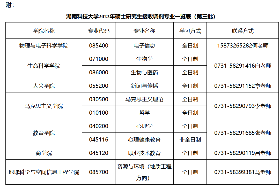 以上就是小編整理“2022考研調劑:湖南科技大學2022年碩士研究生調劑復試公告(第三批)”的全部內容,想了解更多調劑信息,請持續關注本網站。