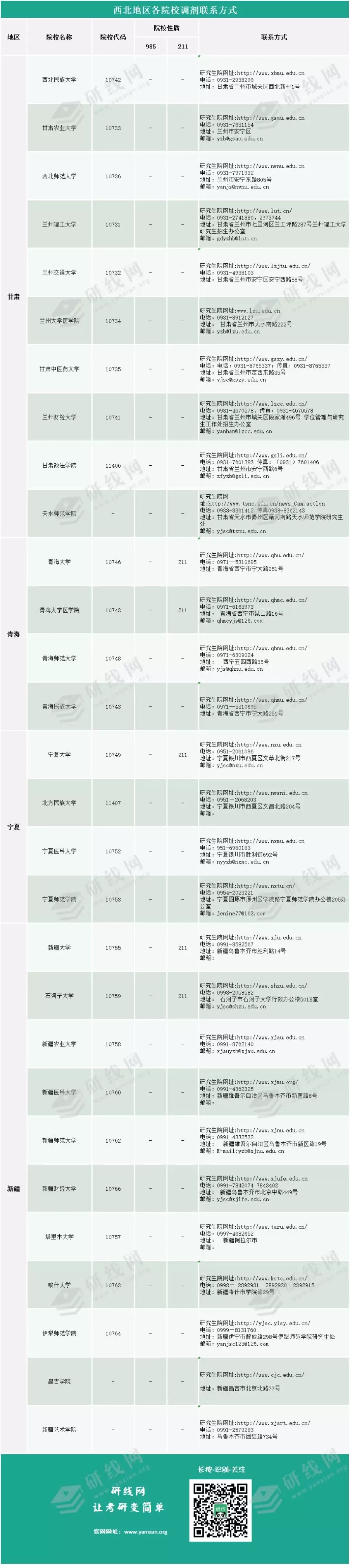 【調劑信息】西北地區院校調劑聯系方式查詢!