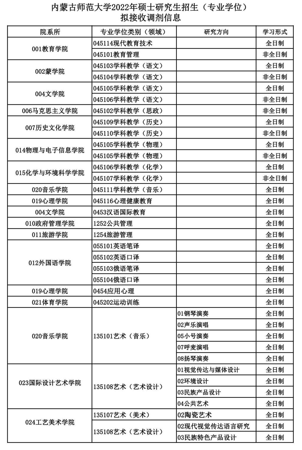 以上就是小編整理“2022考研調劑:內蒙古師范大學2022年碩士研究生招生擬接收調劑信息公告”的全部內容,想了解更多調劑信息,請持續關注本網站。