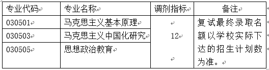 擬接收調劑生的專業主要為030501馬克思主義基本原理、030503馬克思主義中國化研究、030505思想政治教育,以上專業均為全日制學術型。