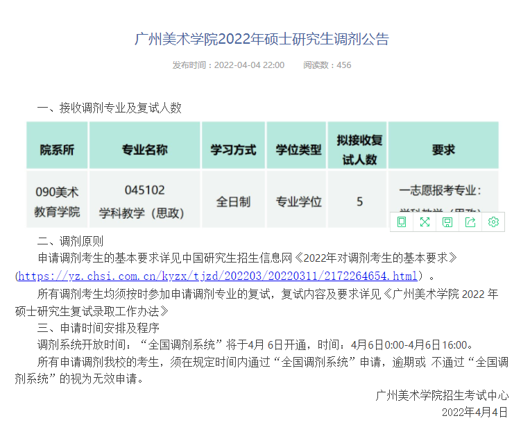 2022年廣州美術學院調劑信息”的全部內容,想了解更多調劑信息,請持續關注本網站。