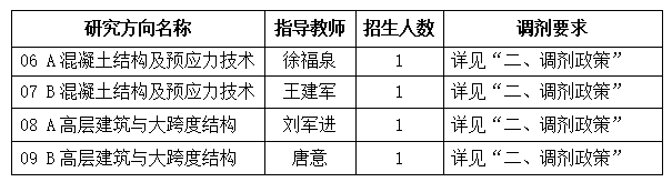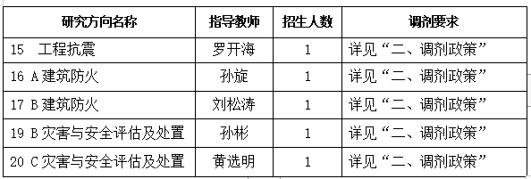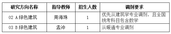 注:“優先從建筑學專業調劑”即在首次開通調劑系統時,僅接受本科為建筑學專業且報考專業為建筑技術科學專業的考生調劑,一志愿考試科目應包含數學。若未招收到符合要求的調劑考生,在后續開通調劑系統時視情況從暖通專業的考生中調劑。除表中的調劑要求外,還需符合我院的調劑政策。