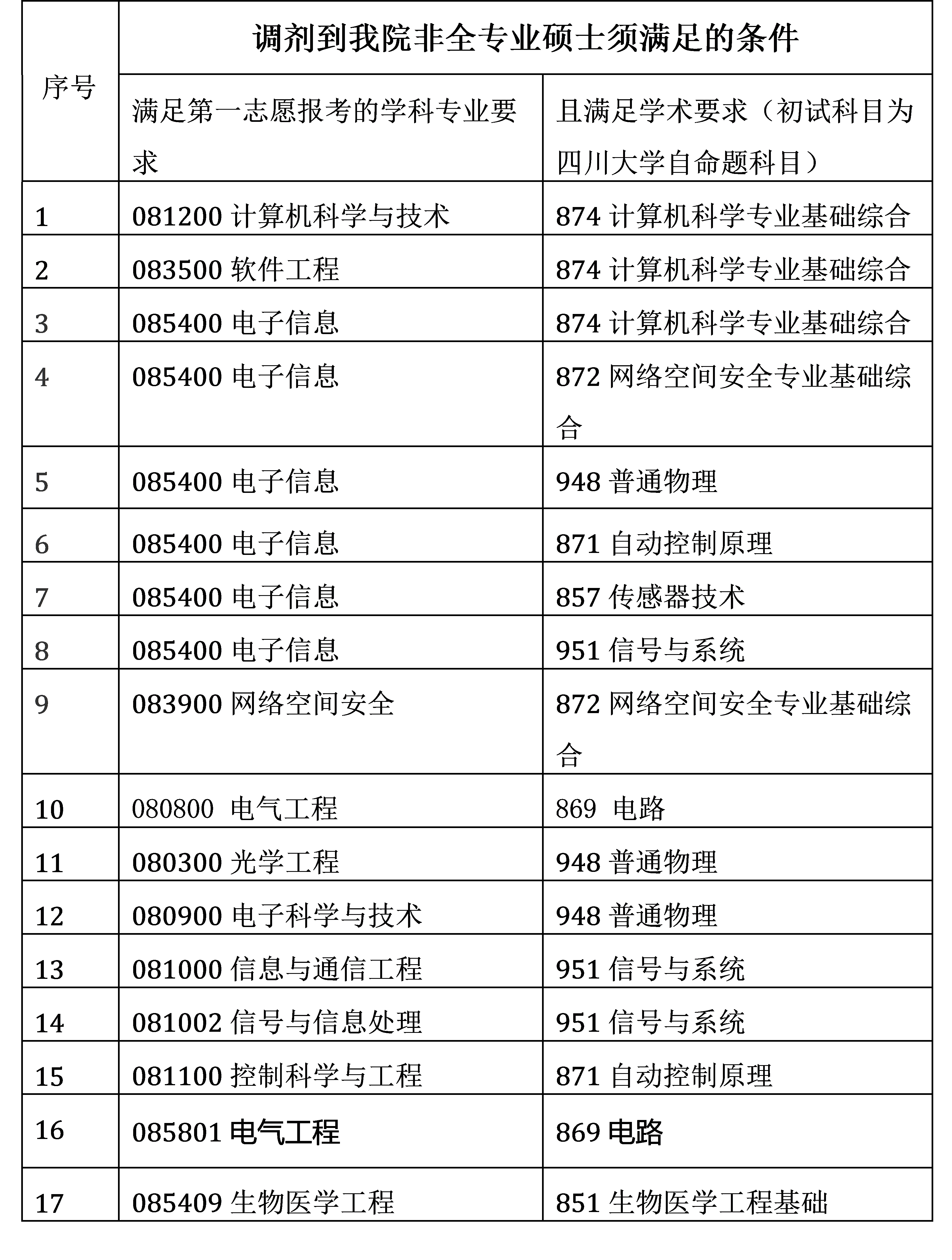 根據(jù)2023年四川大學(xué)研究生復(fù)試錄取工作的相關(guān)文件,調(diào)劑需滿足以下條件: