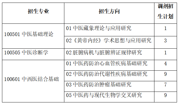 中醫(yī)基礎(chǔ)理論、中醫(yī)診斷學(xué)(專業(yè)代碼100501、100505)限招中醫(yī)學(xué)全日制普通本科、中西醫(yī)結(jié)合醫(yī)學(xué)全日制普通本科(本科畢業(yè)授予醫(yī)學(xué)學(xué)位)。