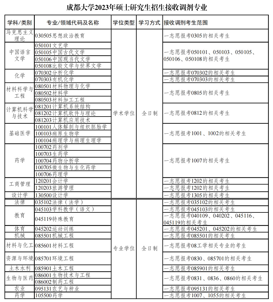 考研是場信息戰(zhàn),必須搶占先機!考研調劑更是如此。以下是小編分享“2023考研調劑:成都大學2023年碩士研究生招生調劑信息公告”的內容,希望對你們有幫助!