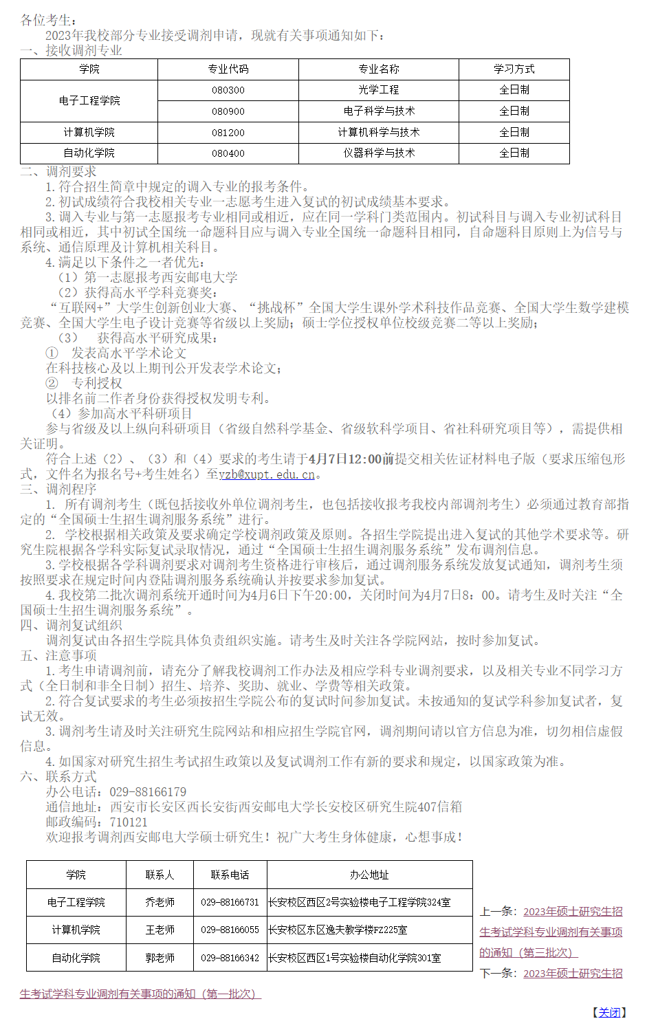 以上就是小編整理“2023考研調(diào)劑:西安郵電大學2023年碩士研究生招生考試學科專業(yè)調(diào)劑有關事項的通知(第二批次)”的全部內(nèi)容,想了解更多調(diào)劑信息,請持續(xù)關注本網(wǎng)站。