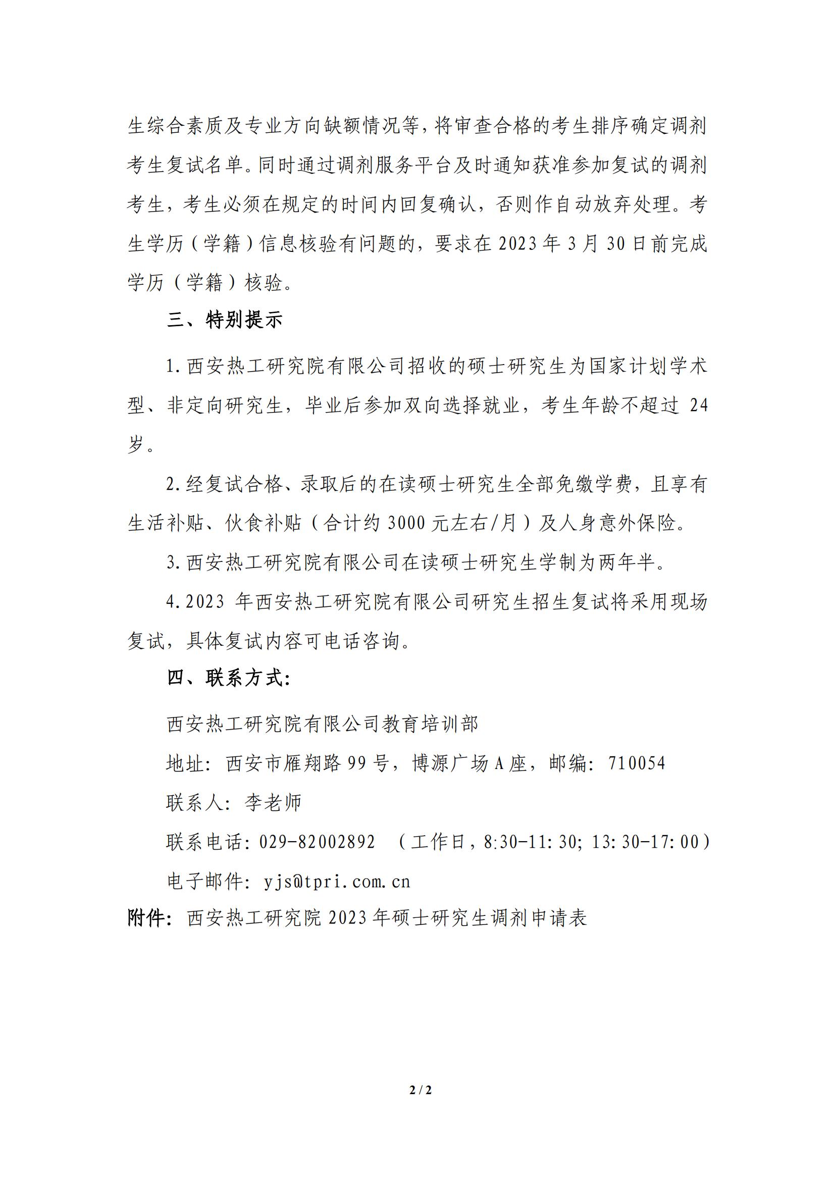 以上就是小編整理“2023考研調劑:西安熱工研究院有限公司2023年碩士研究生招生調劑信息”的全部內容,想了解更多調劑信息,請持續關注本網站。