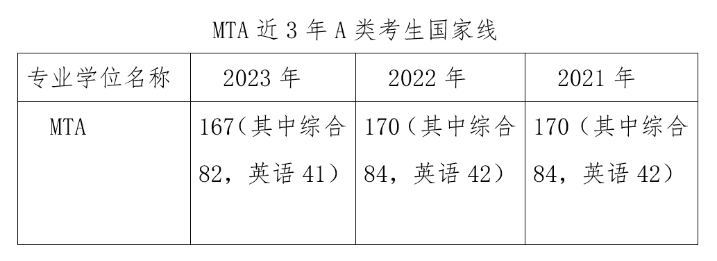1.考生參加2024年全國管理類聯(lián)考,第一志愿報考其他院校,聯(lián)考初試成績基本能達到2024年國家A類地區(qū)MTA分數(shù)線(預(yù)計2024年3月中上旬公布),目前可參考近3年國家A類地區(qū)MTA分數(shù)線: