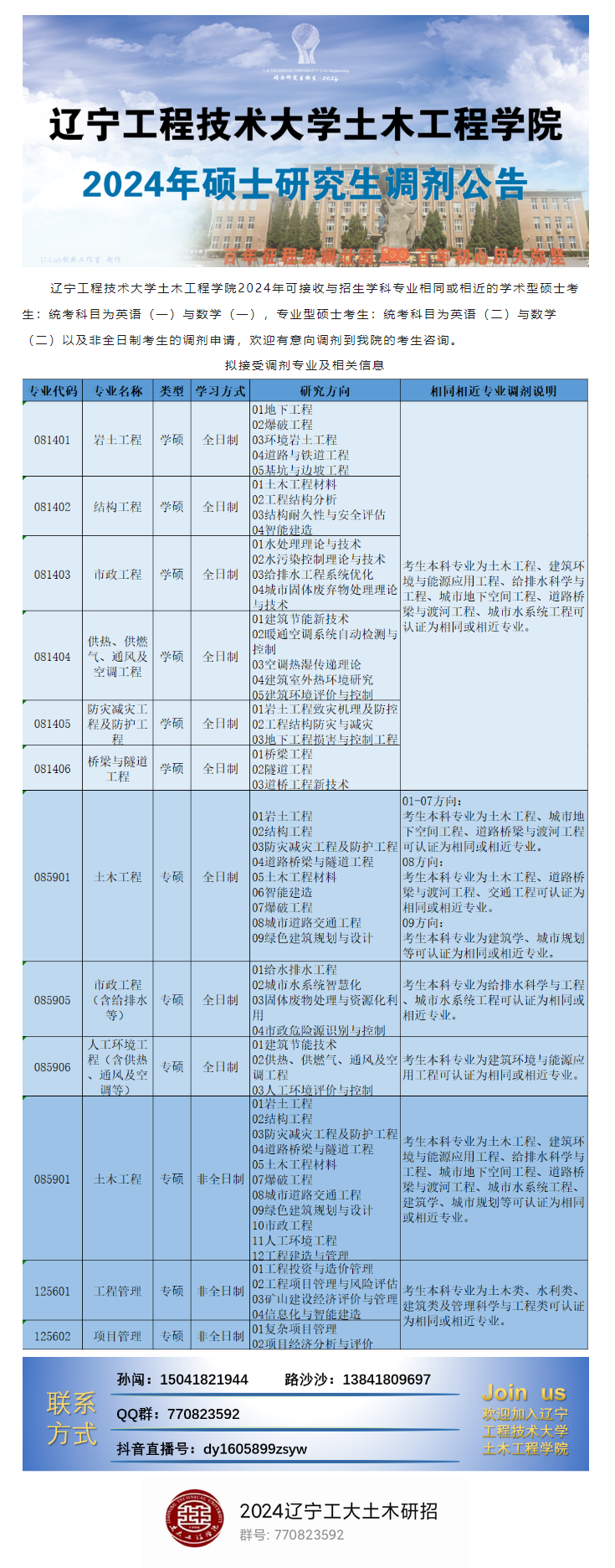 2024考研調(diào)劑:遼寧工程技術(shù)大學(xué)土木工程學(xué)院2024年碩士研究生調(diào)劑公告