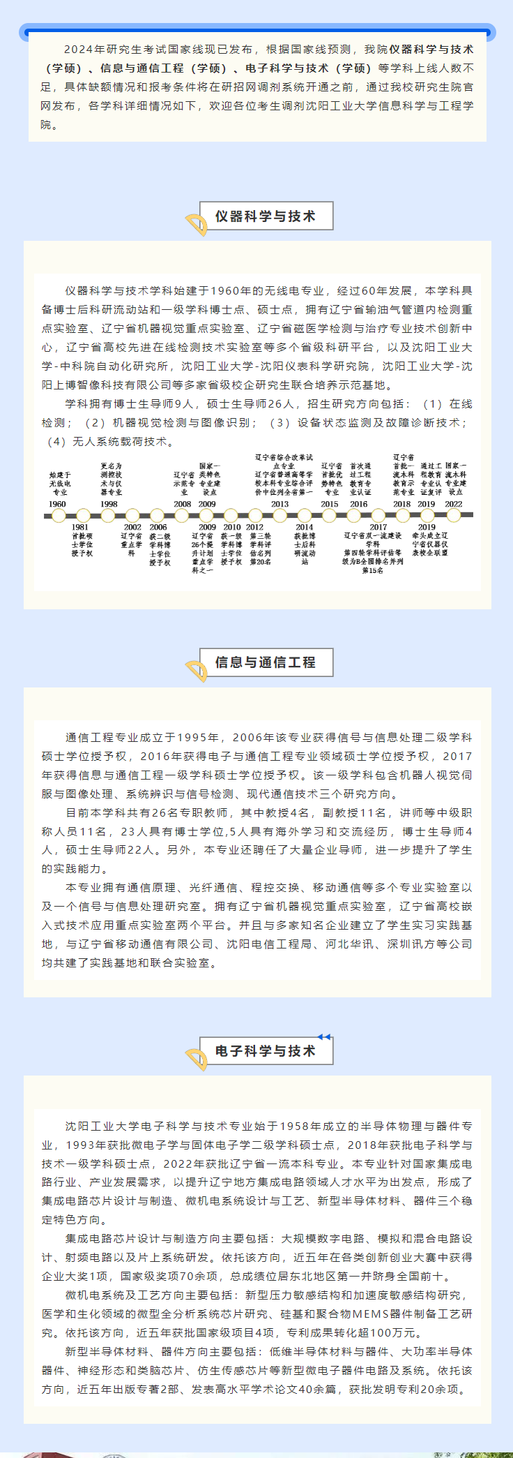 以上就是小編整理“2024考研調劑:沈陽工業大學信息科學與工程學院2024年研究生調劑信息”的全部內容,想了解更多調劑信息,請持續關注本網站。