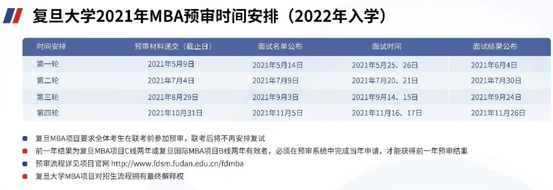 以上就是“2022MBA提前面試:2022年入學復旦MBA預審申請現已開通 | 附贈預審日歷”,更多相關信息,請持續關注本網站!