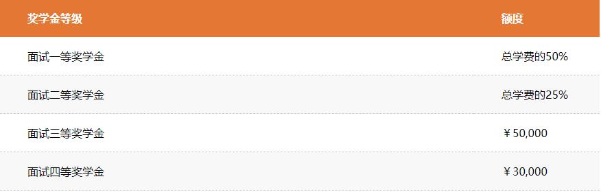 評選依據:根據考生預審面試時的表現進行打分,按照排名獲得相應獎學金,覆蓋率可高達75%。