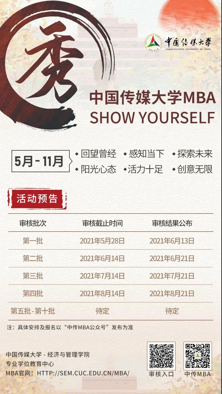 以上就是“2022MBA提前面試:中國傳媒大學MBA2022招生活動發布”,更多相關信息,請持續關注本網站!