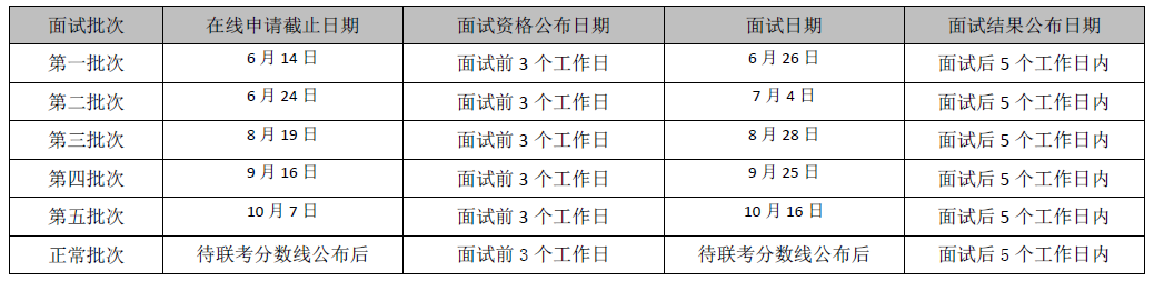 5. 在線申請日期對應了指定面試批次及相關安排,書面材料的提交和審核將統一在面試環節進行。