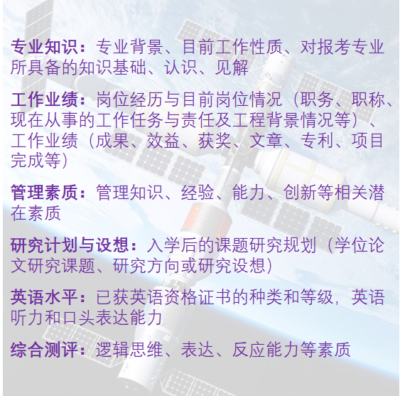 4、大學本科畢業后有3年以上工作經驗的人員;或獲得國家承認的高職高專畢業學歷或大學本科結業后,符合招生單位相關學業要求,達到大學本科畢業同等學力并有5年以上工作經驗的人員;或獲得碩士學位或博士學位后有2年以上工作經驗的人員。