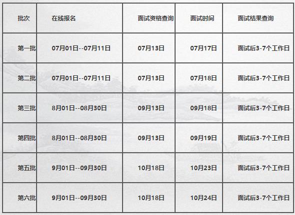 3.評定面試資格。預(yù)面試資格評定結(jié)果一般于每批次提交申請材料截止后的3-7個工作日公布,考生登錄“報考服務(wù)系統(tǒng)”查詢評定結(jié)果。