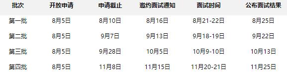 金融MBA擬分四個批次進行提前面試,面試時間為8月-11月。