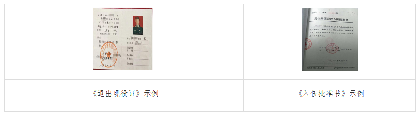 ★5.報考“退役大學生士兵”專項計劃的考生,必須提交《退出現役證》原件和《入伍批準書》原件或復印件(復印件需加蓋檔案部門公章)的照片。