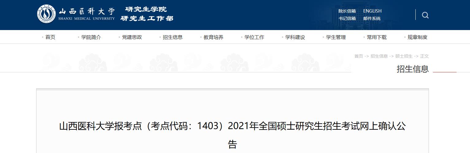 2021考研網(wǎng)報(bào)信息:山西醫(yī)科大學(xué)報(bào)考點(diǎn)2021年全國(guó)碩士研究生招生考試網(wǎng)上確認(rèn)公告