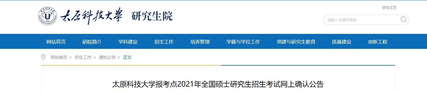原文標題:太原科技大學報考點2021年全國碩士研究生招生考試網上確認公告