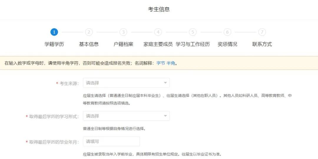 這一部分主要是對考生的一個提醒,告訴考生,想要報名,應該注意的要求,如果有不符合報考要求的,則無法進行報名。相當于報名前的第一次篩選。