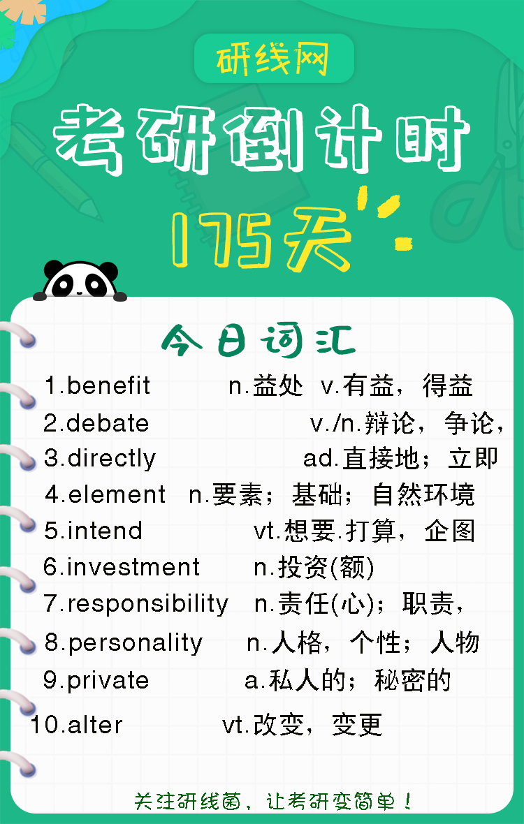 以上是研線網為考生整理的“2020考研英語詞匯高頻詞匯(10)”相關內容,希望對大家有幫助,研線網小編預祝大家都能取得好成績!更多英語詞匯相關內容盡在研線網!
