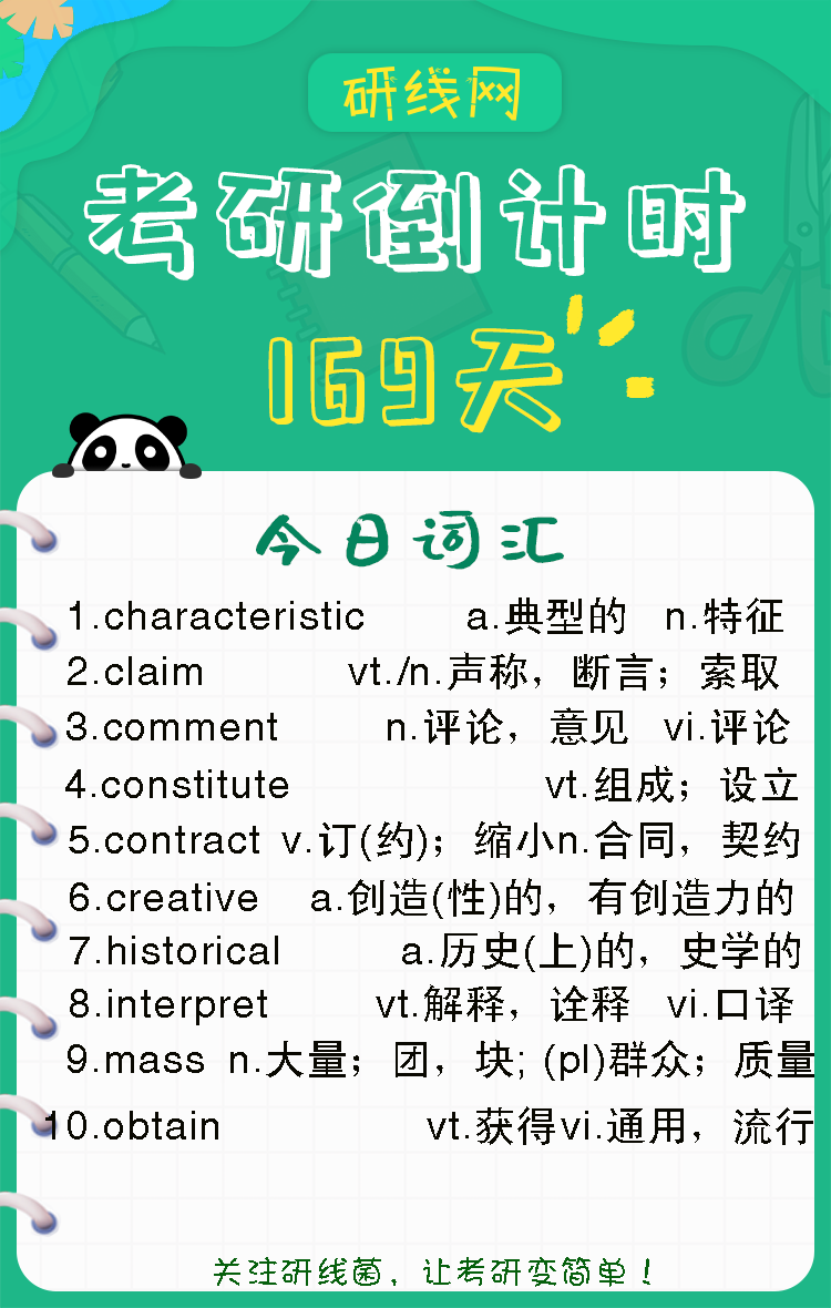 以上是研線網為考生整理的“2020考研英語詞匯高頻詞匯(16)”相關內容,希望對大家有幫助,研線網小編預祝大家都能取得好成績!更多英語詞匯相關內容盡在研線網!
