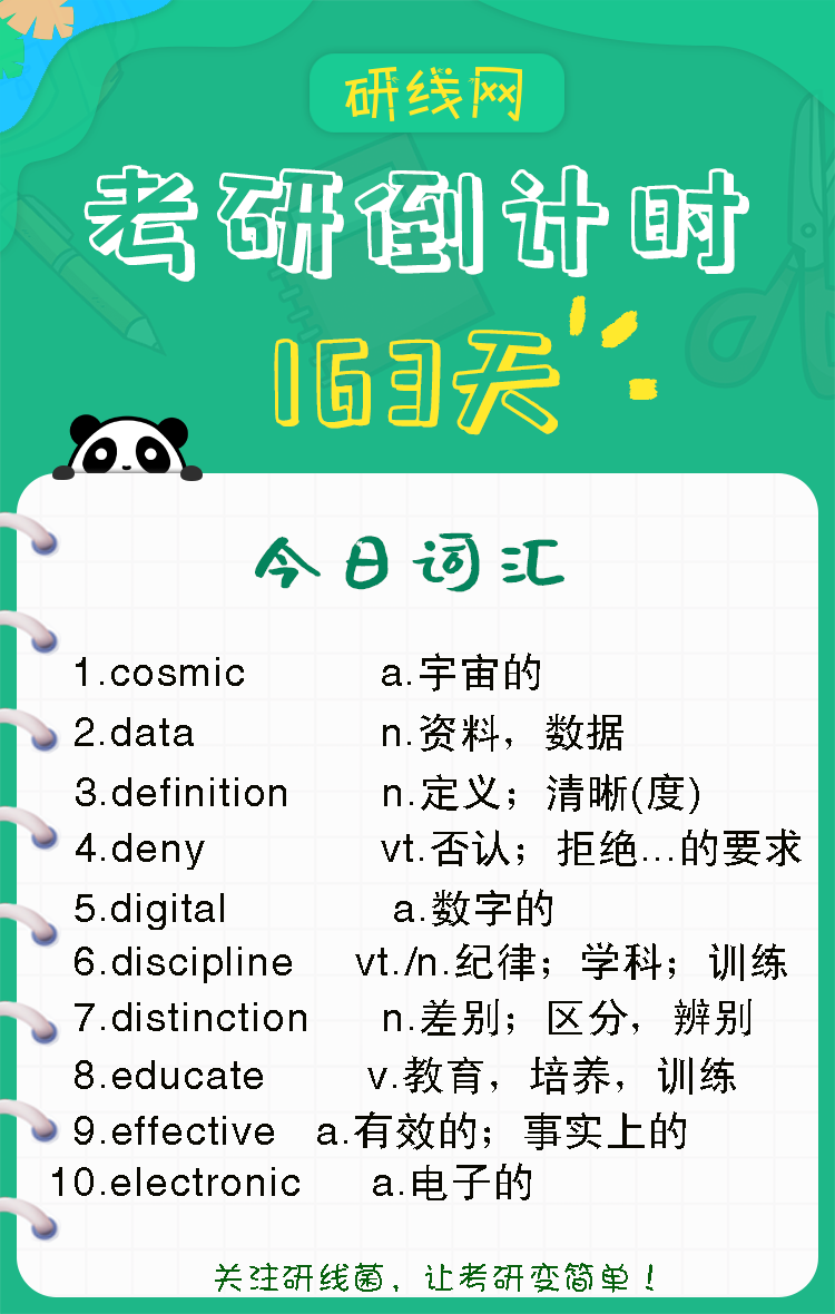 以上是研線網為考生整理的“2020考研英語詞匯高頻詞匯(23)”相關內容,希望對大家有幫助,研線網小編預祝大家都能取得好成績!更多英語詞匯相關內容盡在研線網!