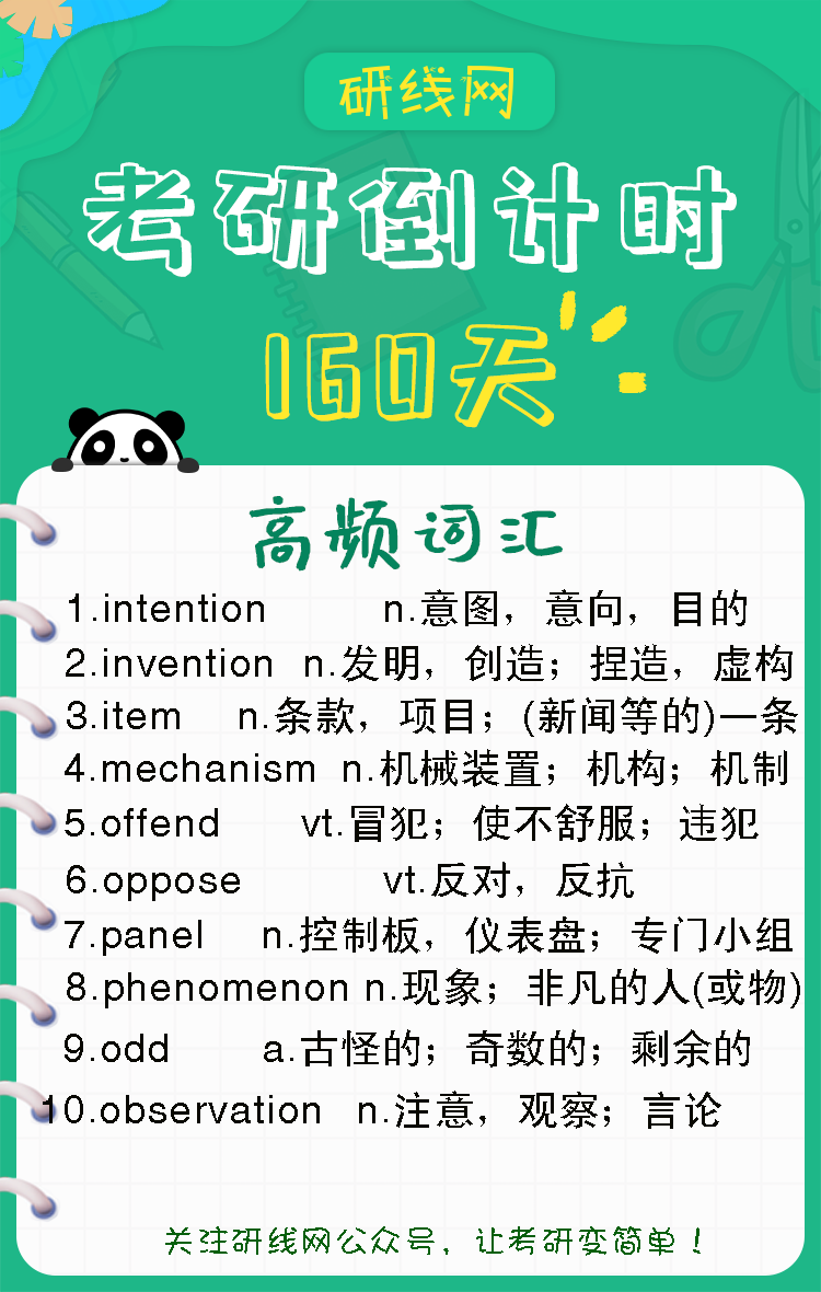 以上是研線網為考生整理的“2020考研英語詞匯高頻詞匯(26)”相關內容,希望對大家有幫助,研線網小編預祝大家都能取得好成績!更多英語詞匯相關內容盡在研線網!