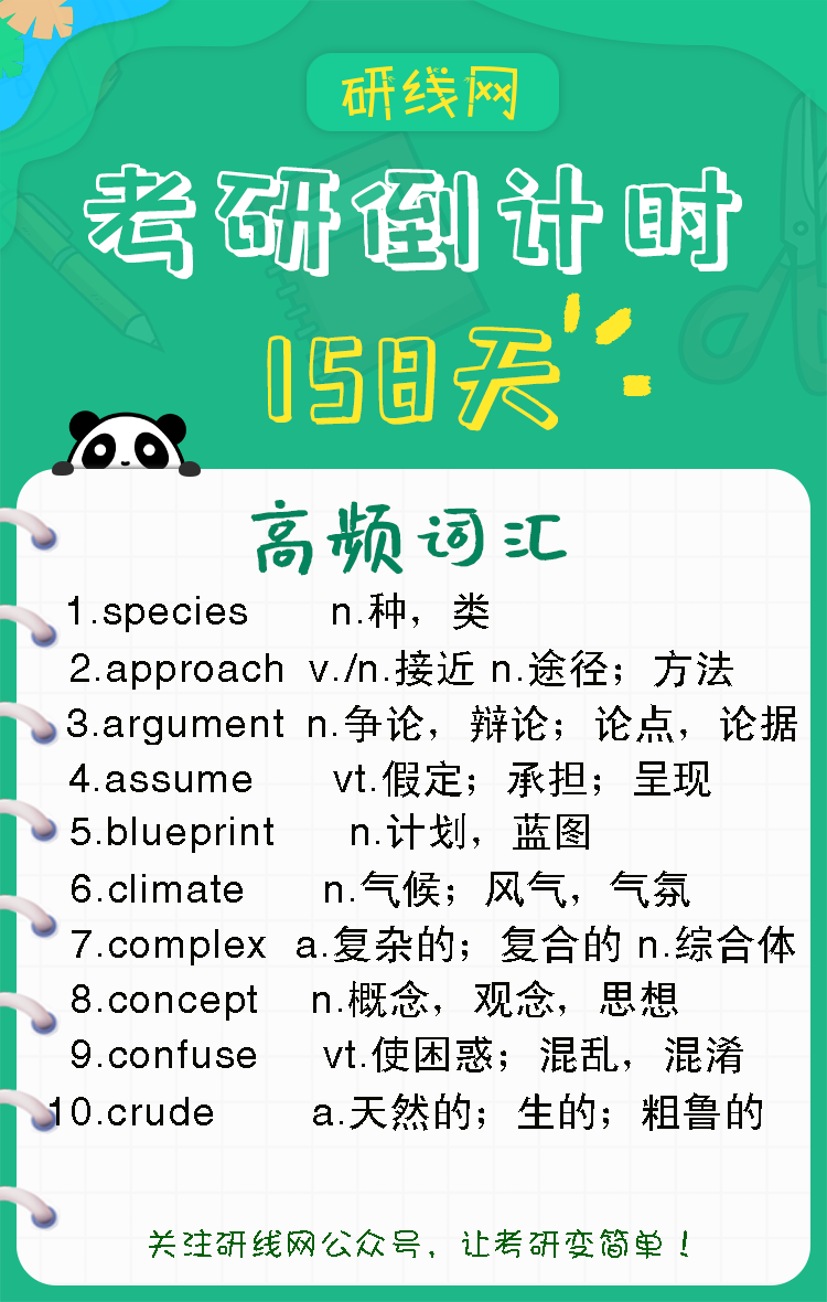 以上是研線網為考生整理的“2020考研英語詞匯高頻詞匯(28)”相關內容,希望對大家有幫助,研線網小編預祝大家都能取得好成績!更多英語詞匯相關內容盡在研線網!
