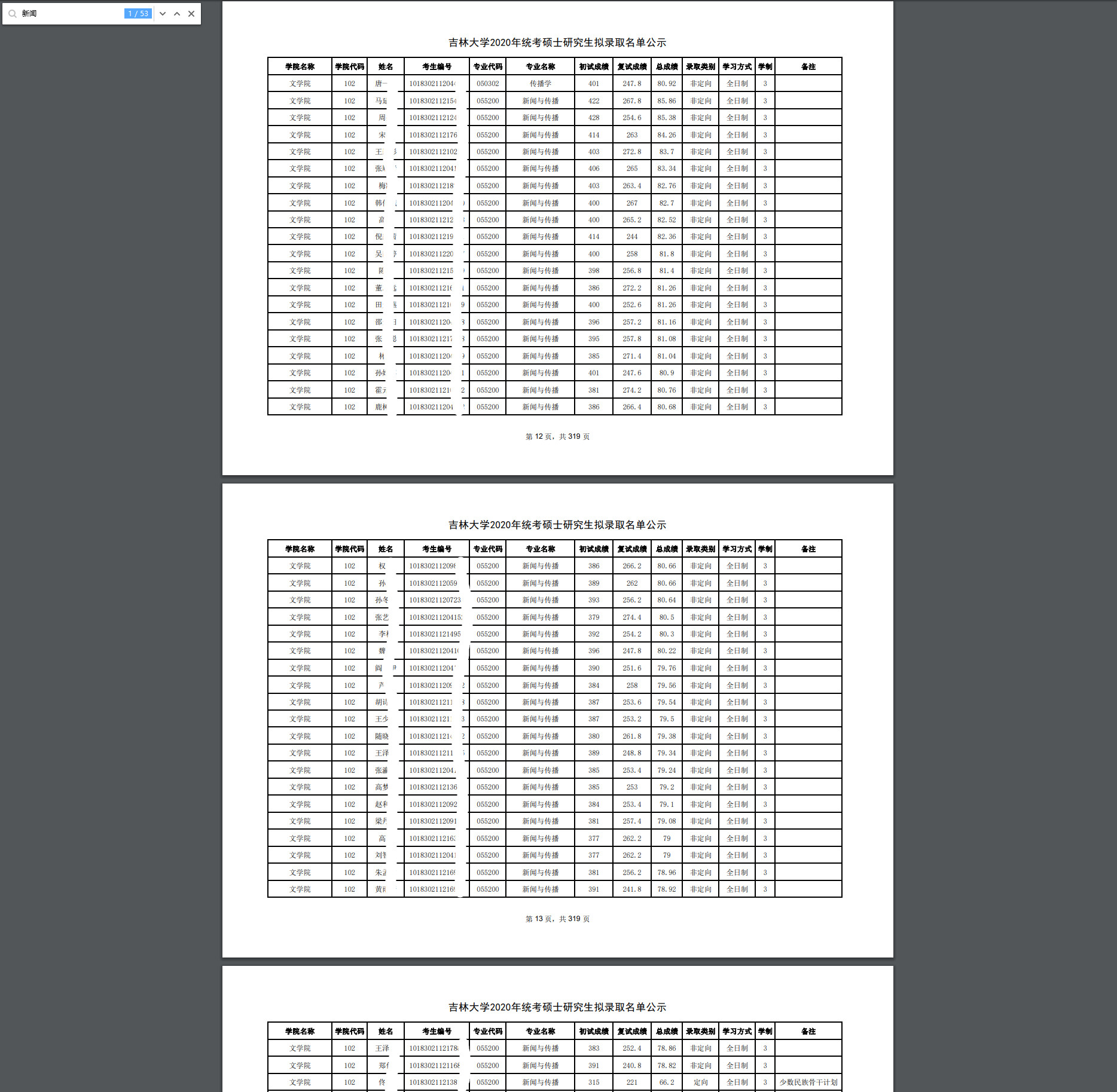 以上就是“2020新傳擬錄取名單:吉林大學文學院新傳專碩(MJC)擬錄取名單公示”的全部內容,同學們記得關注一下。考研加油!