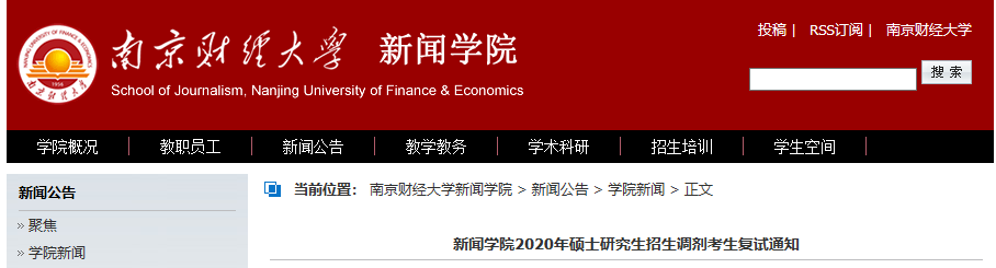 以上就是“2020新傳考研調劑:南京財經大學新聞學院2020年碩士研究生招生調劑考生復試通知”的全部內容!更多考研調劑內容,請關注考研調劑信息欄目!