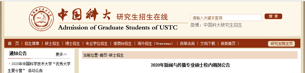 科技傳播與科技政策系新聞與傳播專業(yè)碩士(專業(yè)代碼055200)現(xiàn)有少量招生名額,根據(jù)《中國(guó)科學(xué)技術(shù)大學(xué)碩士研究生招生調(diào)劑工作管理規(guī)定》,特制定本調(diào)劑公告。