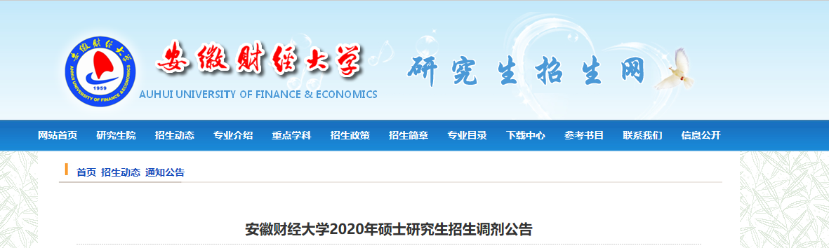 以上就是“2020新傳考研調劑:安徽財經大學2020年碩士研究生招生調劑公告”的全部內容!更多考研調劑內容,請關注考研調劑信息欄目!