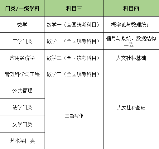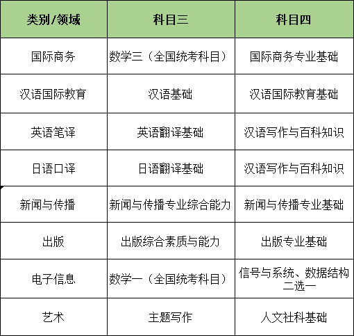 專業學位碩士研究生初試自命題科目(科目三及科目四)