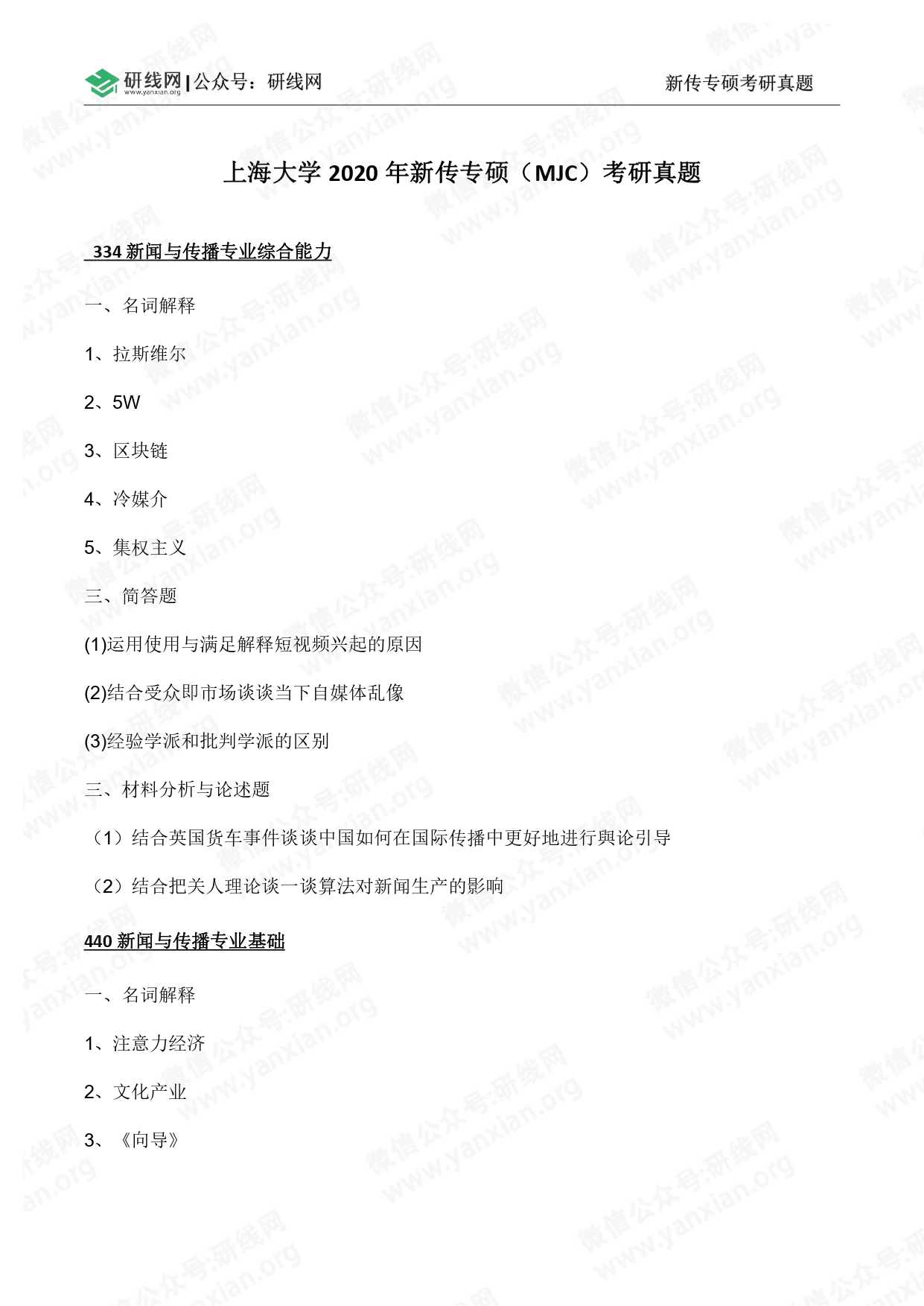 科目三:新聞與傳播專業綜合能力(滿分150分)