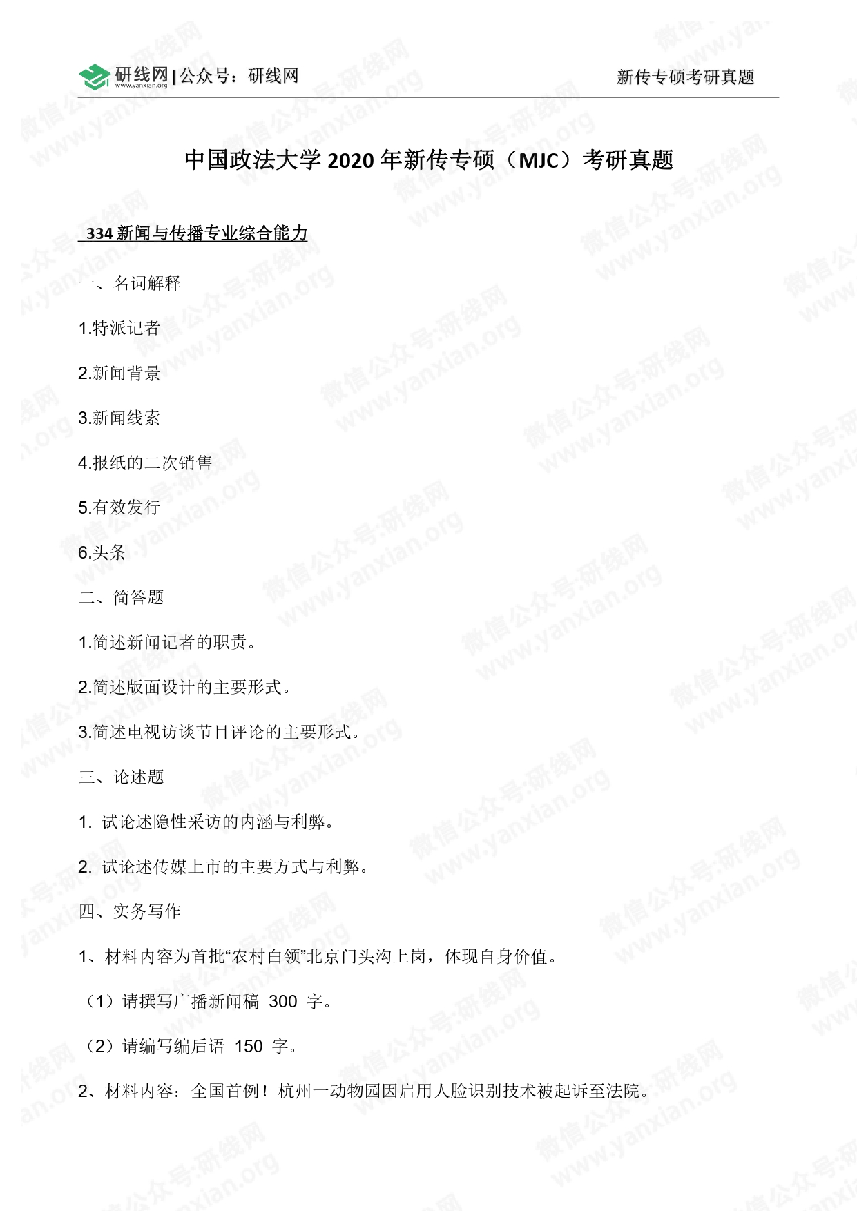 科目三:334新聞與傳播專業綜合能力(滿分150分)