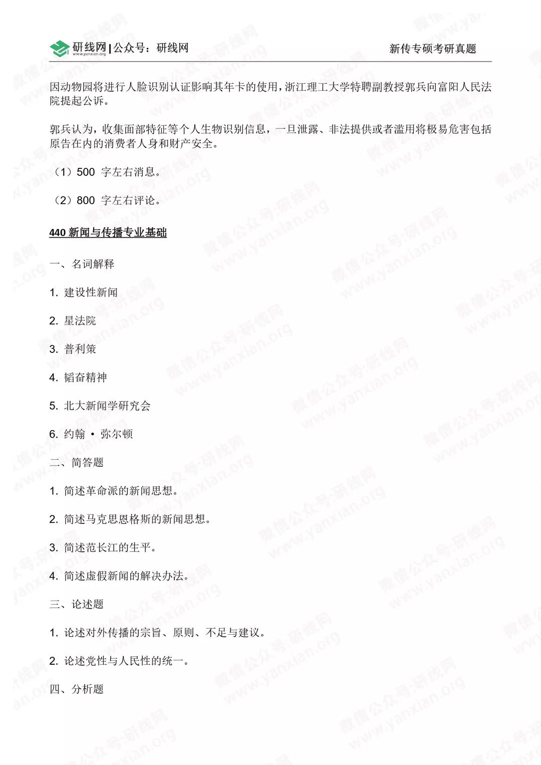科目四:440新聞與傳播專業基礎(滿分150分)