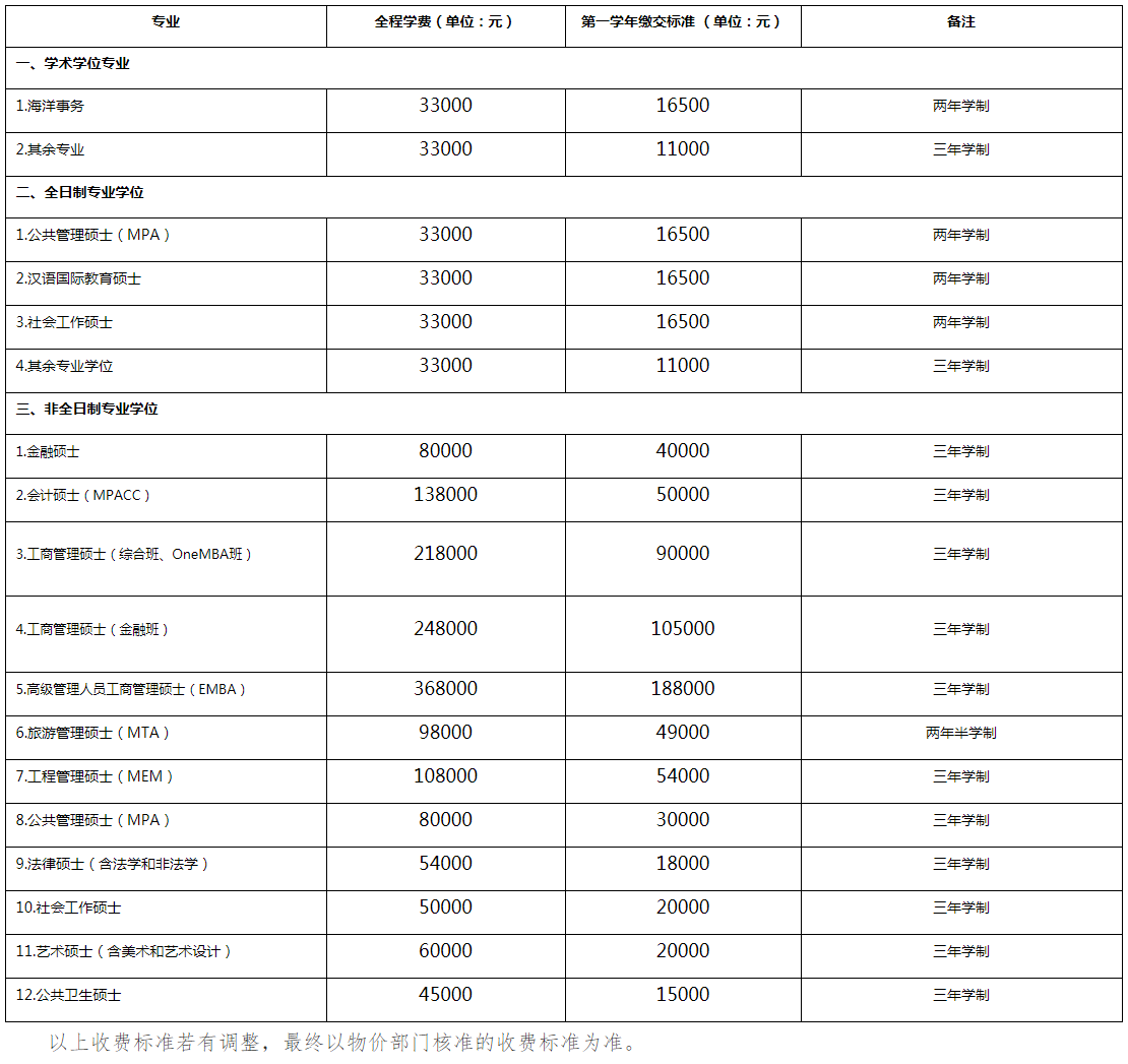 關(guān)于公布廈門大學(xué)2020年碩士研究生學(xué)費標準
