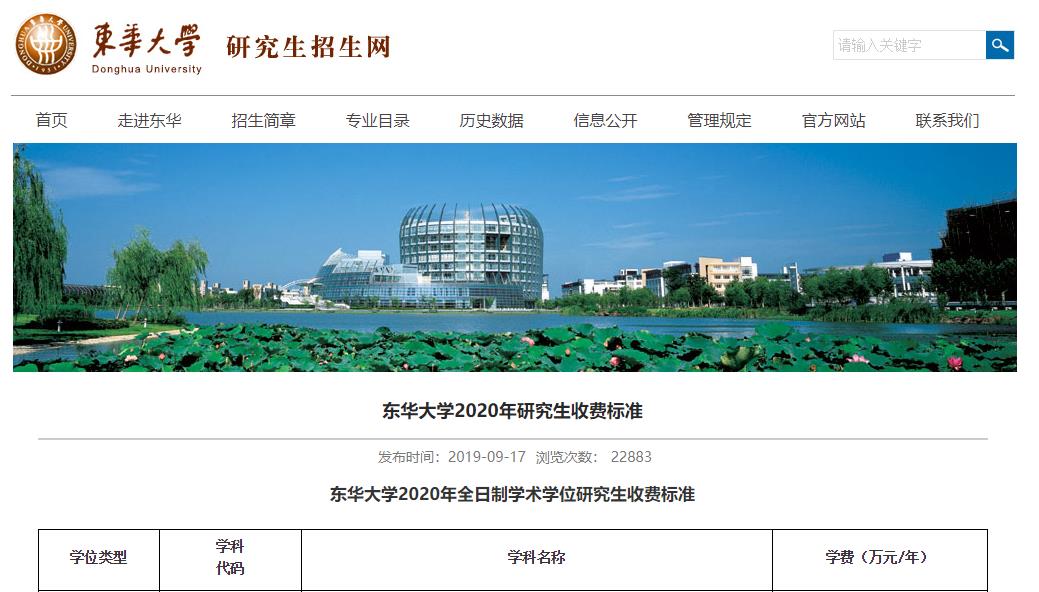 【點(diǎn)擊查看】東華大學(xué)2020年研究生學(xué)費(fèi)收費(fèi)標(biāo)準(zhǔn)