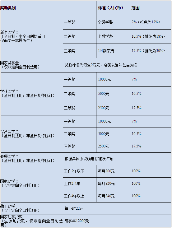 學(xué)費(fèi)和獎(jiǎng)助體系