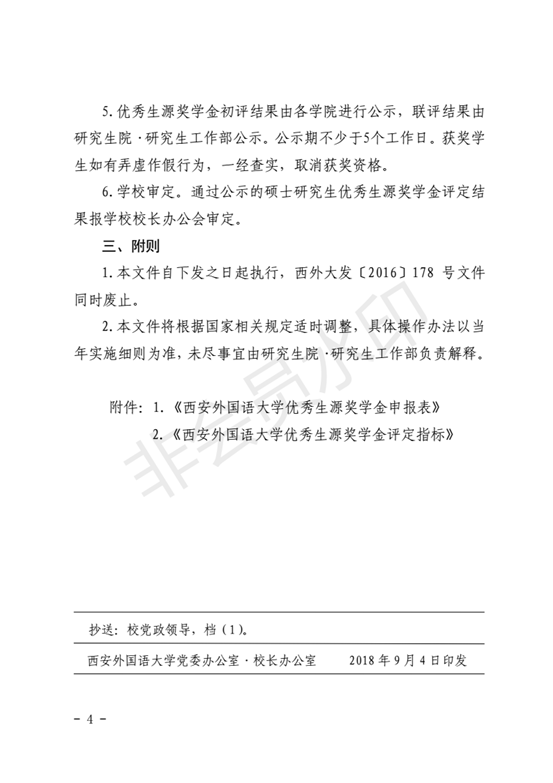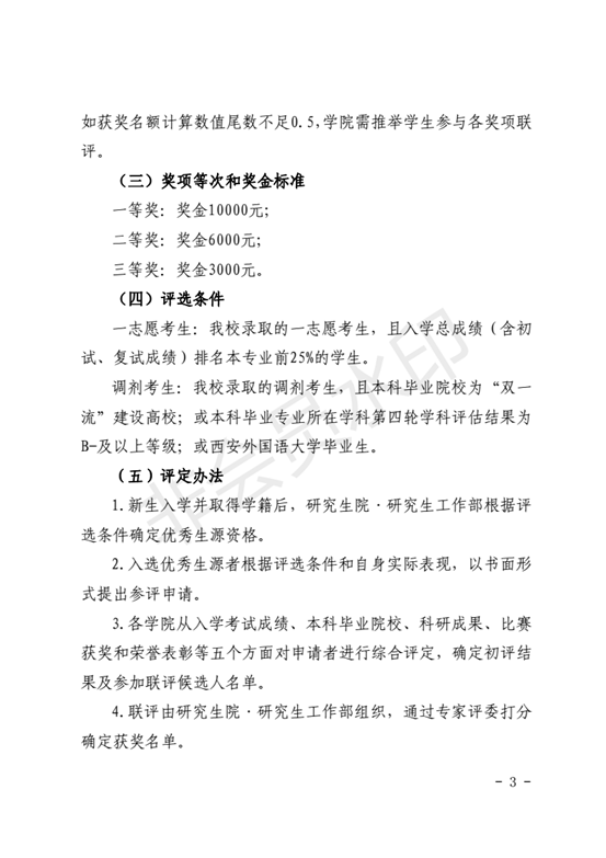 以上就是“西安外國語大學碩士研究生優秀生源獎學金實施辦法(2018年修訂)”的全部內容!更多研究生學費內容,盡在研線網“考研學費”欄目!