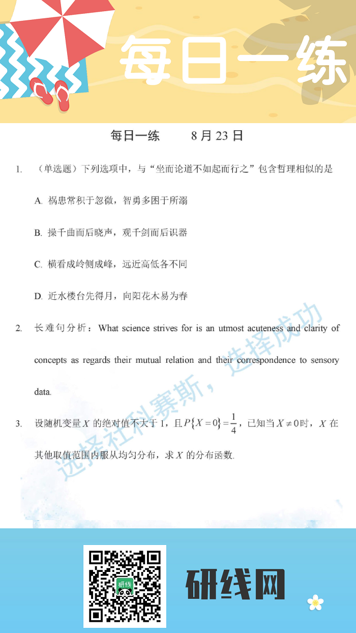 以上就是今日每日一練的全部?jī)?nèi)容,跟著每日一練,考研輕松復(fù)習(xí)!更多考試練習(xí),點(diǎn)擊考研每日一練!