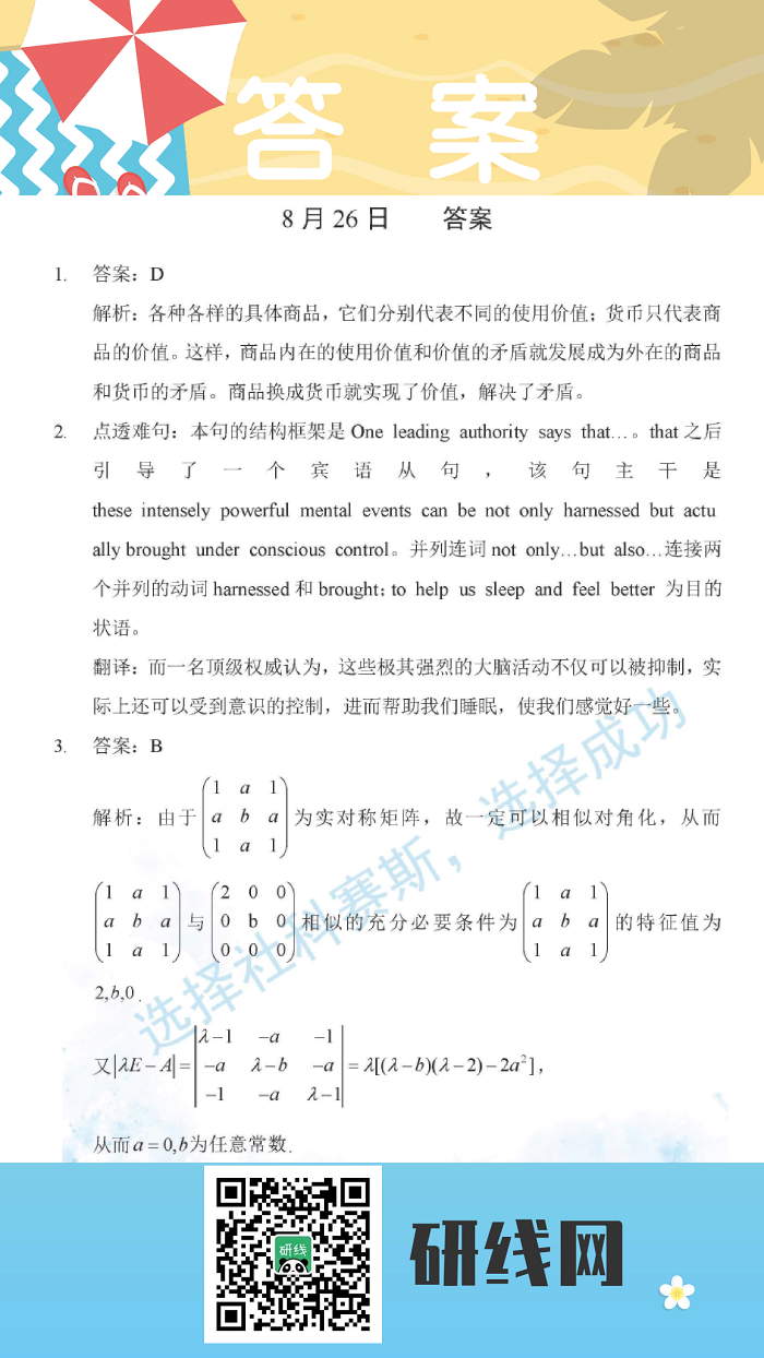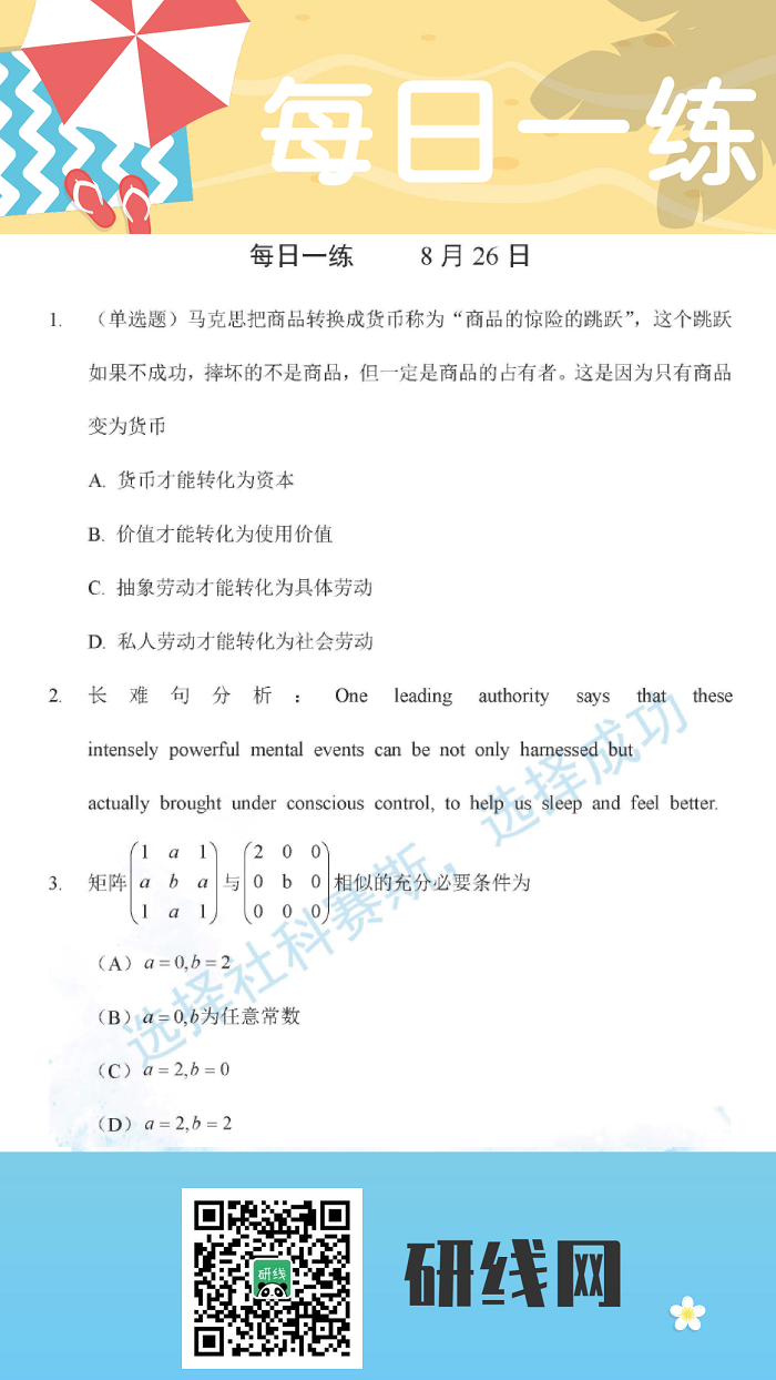 以上就是今日每日一練的全部內容,跟著每日一練,考研輕松復習!更多考試練習,點擊考研每日一練