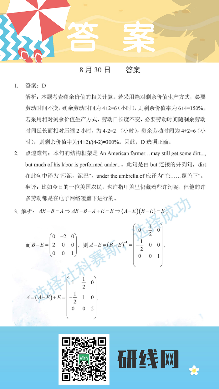 8月30日:2020考研學碩每日一練以及答案