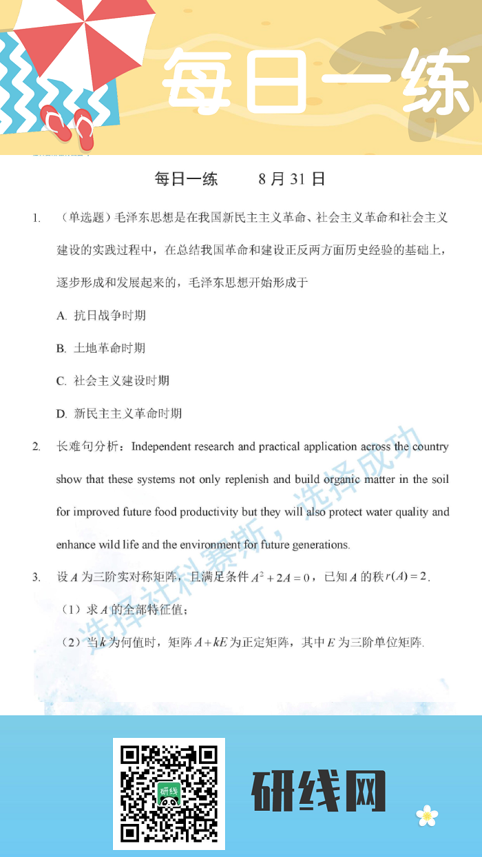 為了更好的復習和鞏固已經學過的知識,研線網小編為大家整理出幾道題,作為每日的練習,希望能夠幫助到同學們哦!