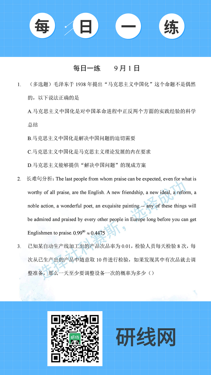 為了更好的復(fù)習(xí)和鞏固已經(jīng)學(xué)過的知識(shí),研線網(wǎng)小編為大家整理出幾道題,作為每日的練習(xí),希望能夠幫助到同學(xué)們哦!