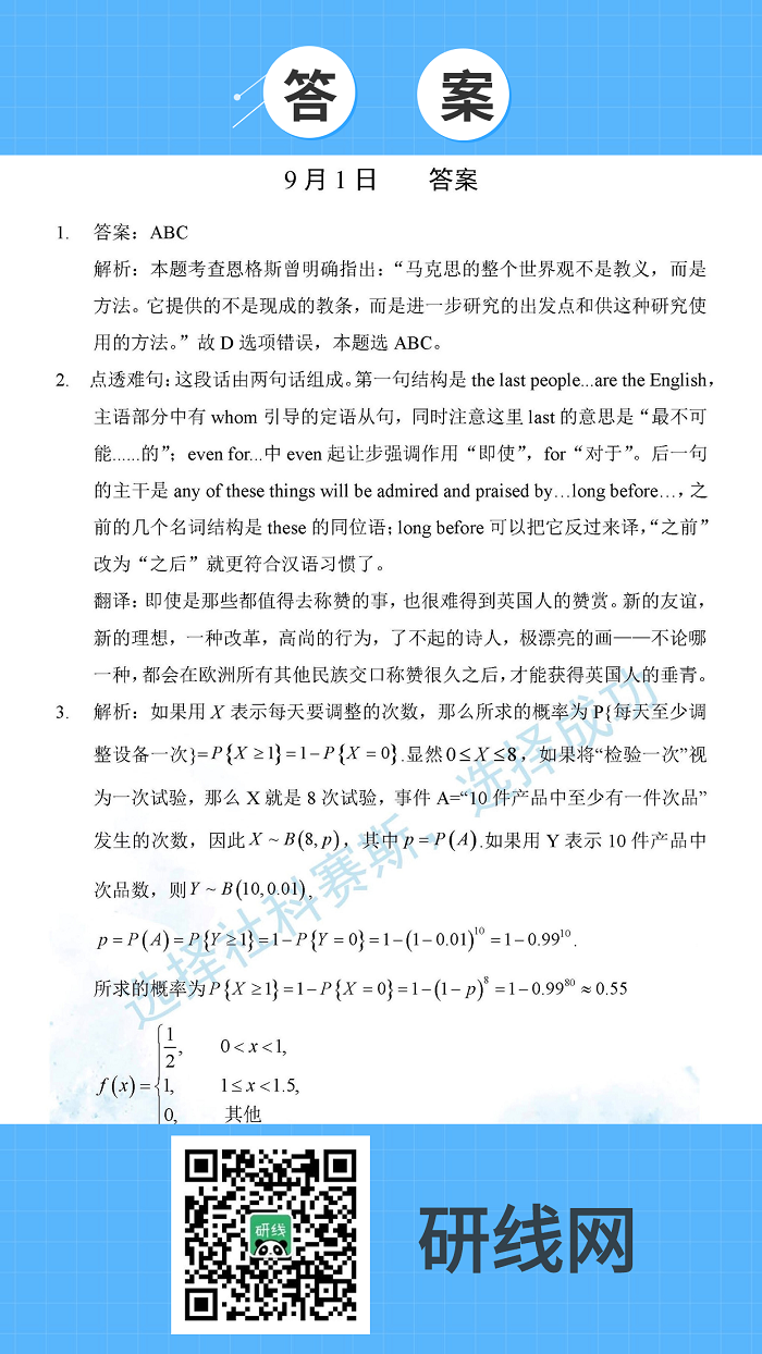 9月1日:2020考研學(xué)碩每日一練以及答案
