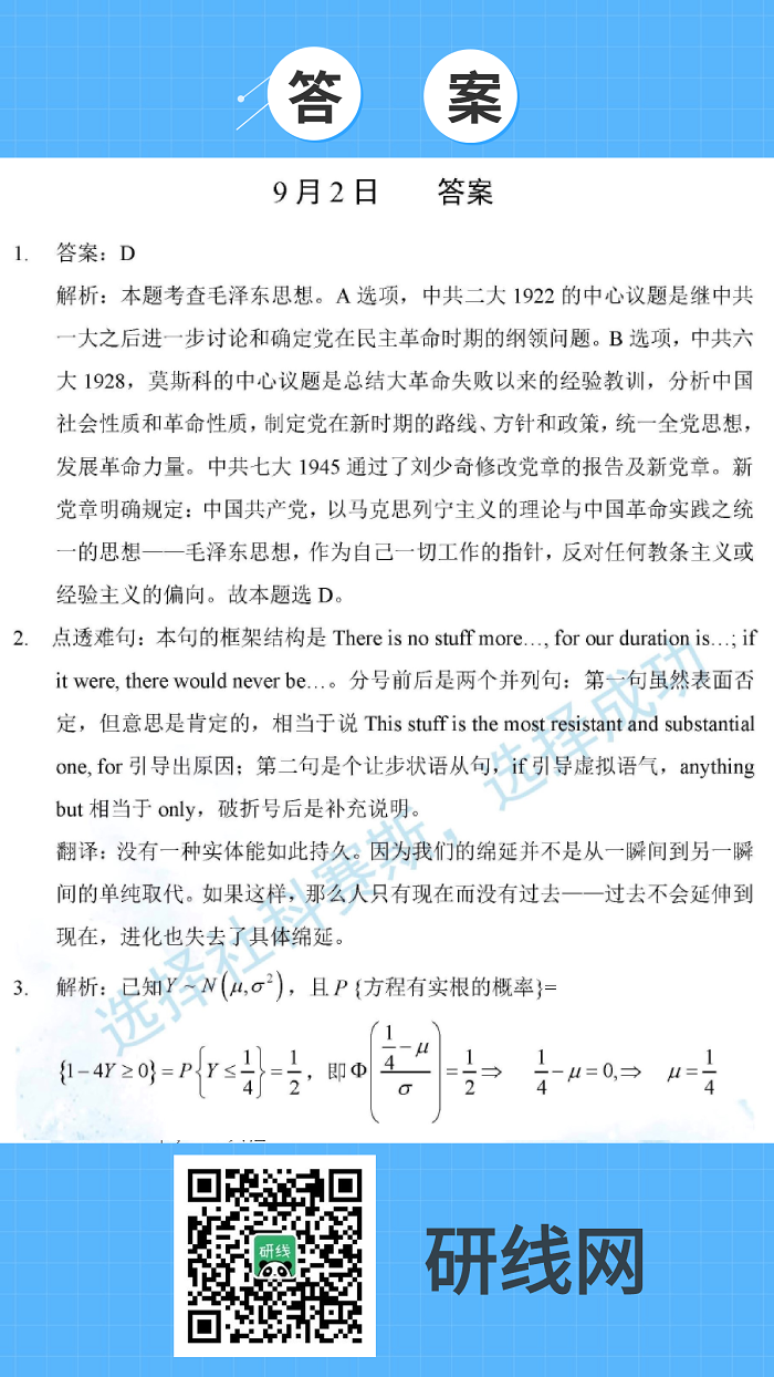 9月2日:2020考研學(xué)碩每日一練以及答案